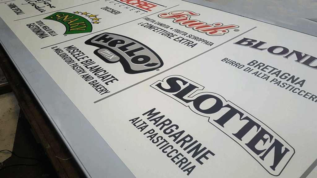 Realizzazione di scritte adesive con stampa digitale su cartelli pubblicitari e pubblicità da esterno.
